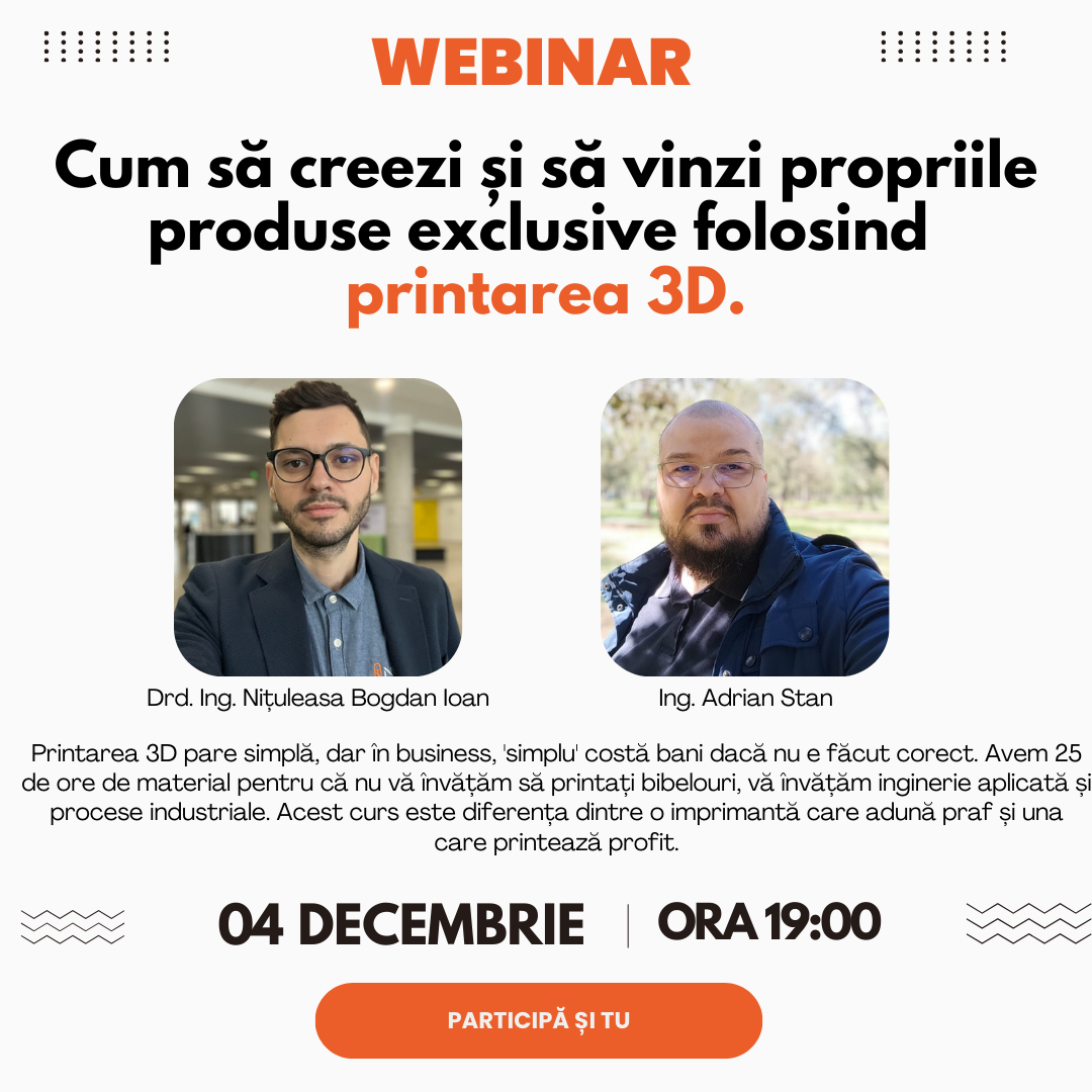 Workshop – Cum să creezi și să vinzi propriile produse exclusive folosind printarea 3D.